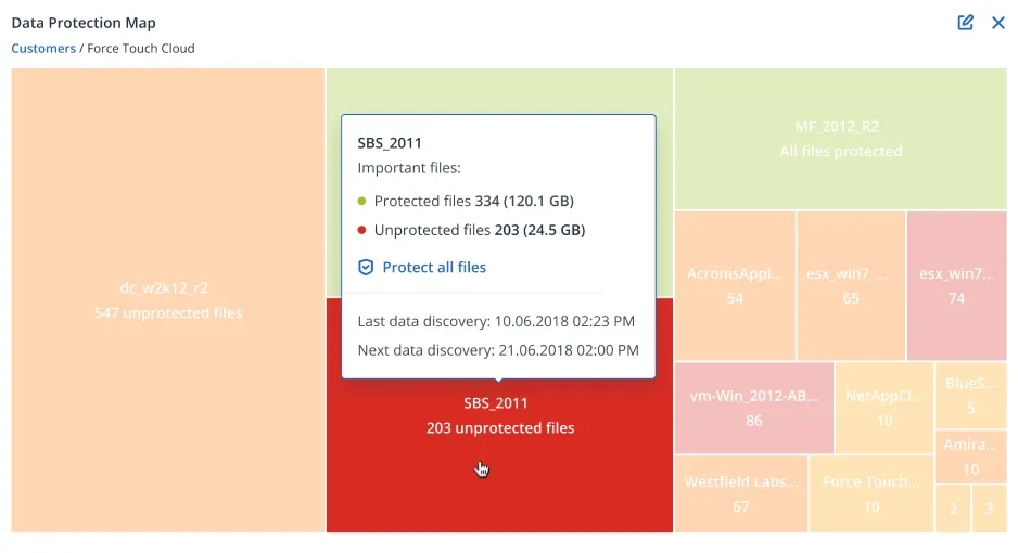 Help your clients meet compliance and regulatory requirements by ensuring that all of their workloads are protected – from data to applications to systems. Acronis’ data backup software enables you to easily scan clients’ machines to identify unprotected files, applications, and workloads to proactively protect their data.